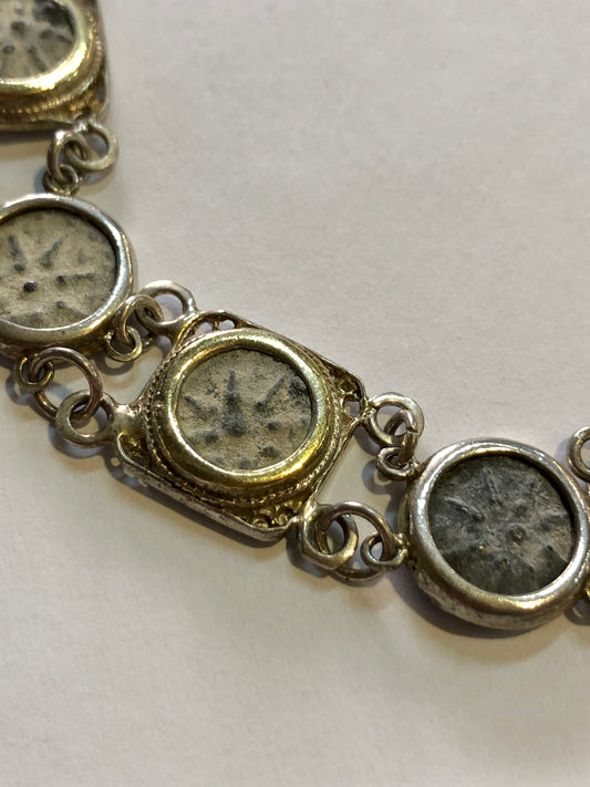 A silver Necklace, widow’s Mite coins put in silver frames 925.
