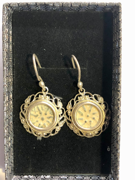 Silver earings, Two Widow’s Mite coins put in a silver frame 925.