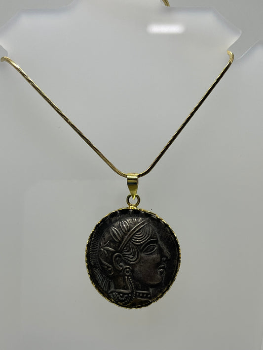 Goddess Athena Coin (405 BCE) in 14k Gold Pendant - Grace and Wisdom Preserved