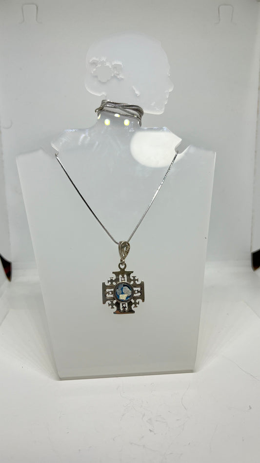 Eternal Reflections: Roman Glass in Silver Jerusalem Cross Pendant