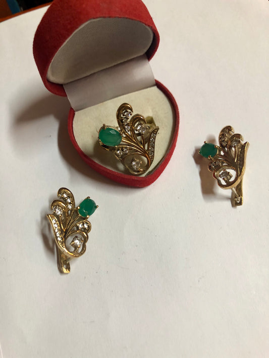 A 925 silver set of a ring and earrings with Sapphire stones.