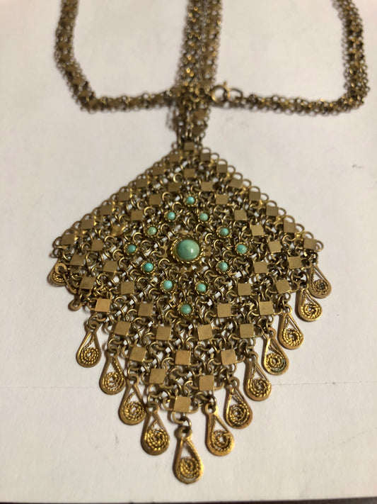A silver-gold plated necklace, antique silver with Turquoise stones.