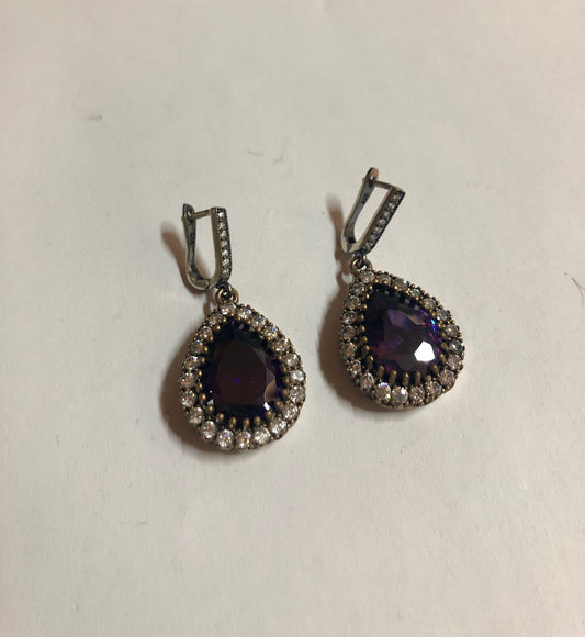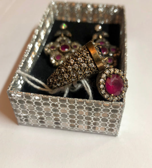 A 925 Silver set of a Ring and Earrings with Sapphire stones.