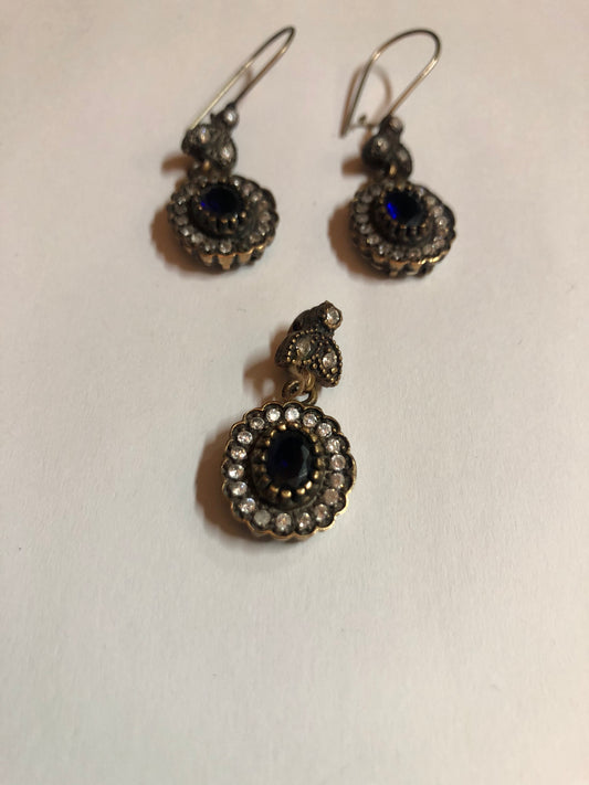 A 925 silver set of a pendant and earrings with Sapphire stones.
