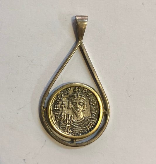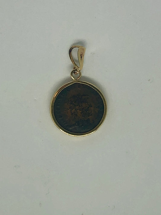 A Roman Bronze Dinar Pendant, 14k. 63 B.C./ 330 A.D.