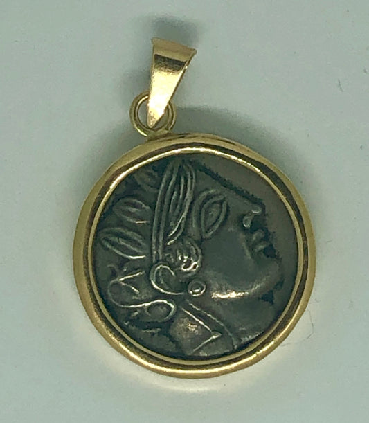 Athena's Greek Coin, a pendant. 14K.