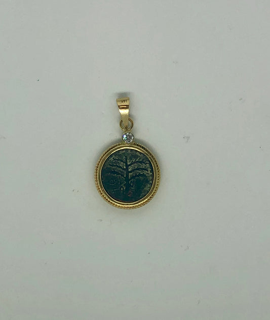 A Pendant of Bar Kochba Palm Tree coins, with a Diamond placed on the top, 14k.