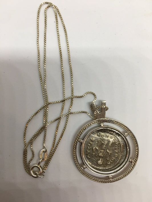 A Roman Silver dinar Pendant, 14k.