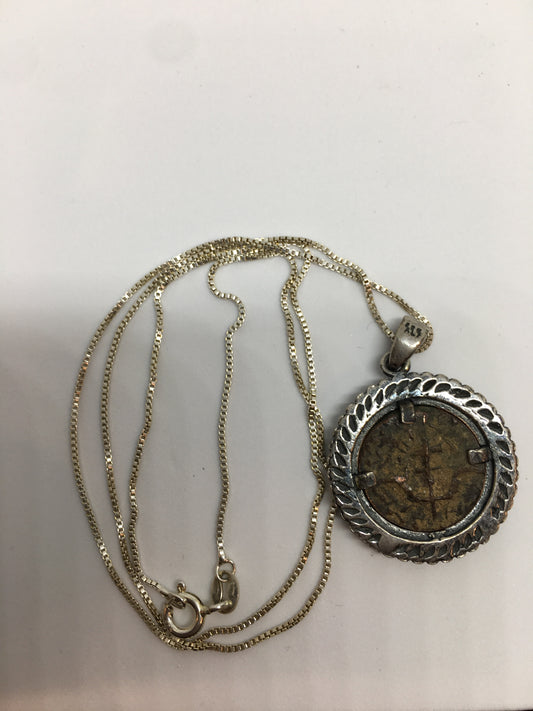 Ancient Biblical Bronze Widow's Mite Coins, set in Silver Necklace.