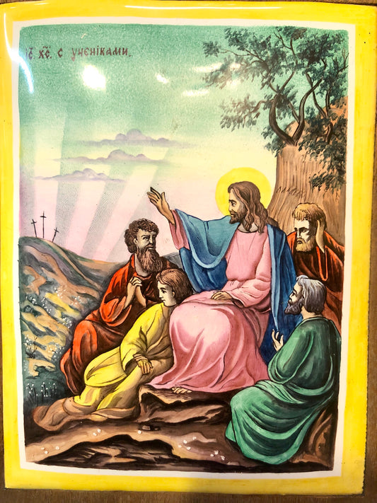 A Russian Enameled icon of Jesus with his Disciples on Olive Oil Mountain.