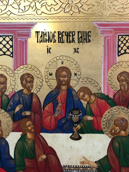 Last Supper, A handmade Russian Icon 120 years old. 20th Century.