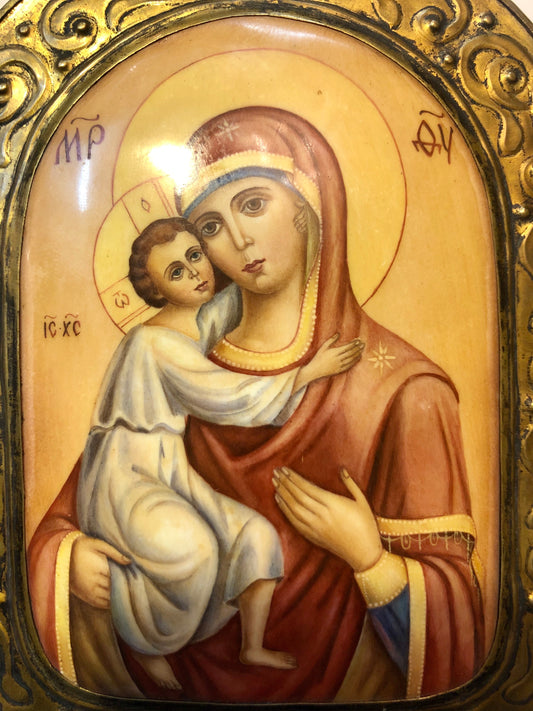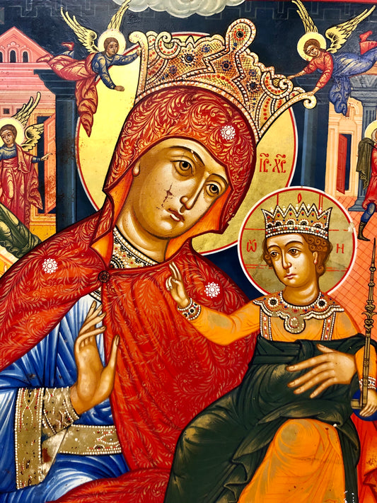 A Russian Icon of Mother of God and God the Father. 20th Century.