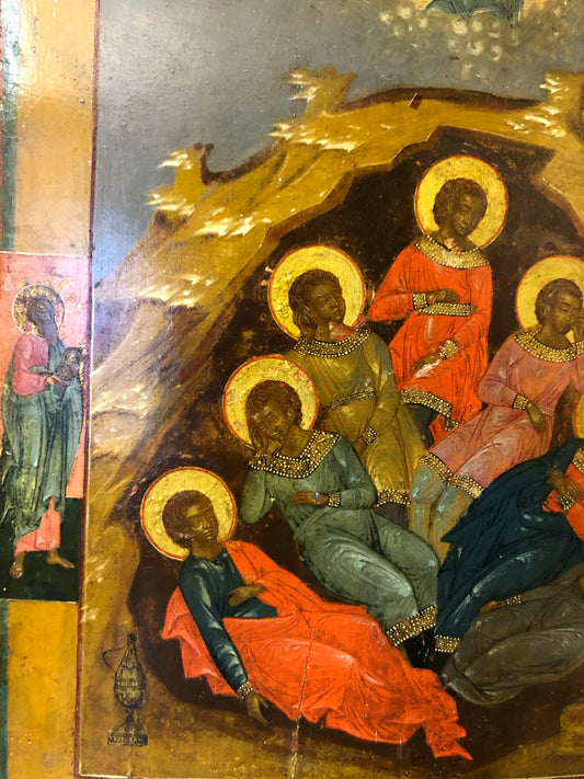 The Seven Sleepers, a handmade Russian icon, late 18th early 19th Century.