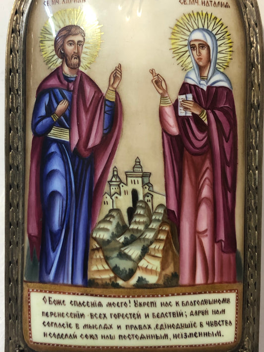 A Russian Silver Enameled icon of Constantine and Helena. 19 Century.