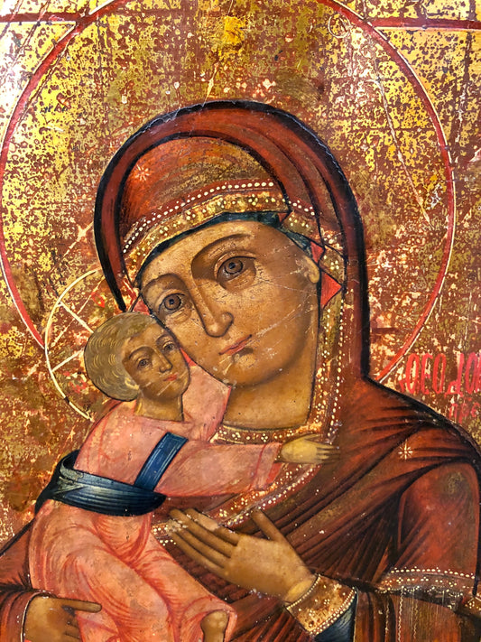 Mother of God Pokrov, a handmade Russian Icon. 19th Century.