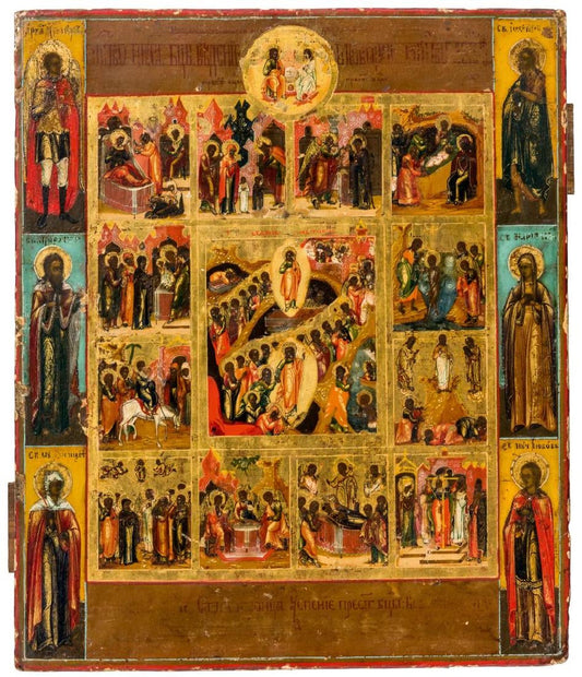A Handmade Russian icon of the presentation of Jesus Christ in the Temple. 19th Century.