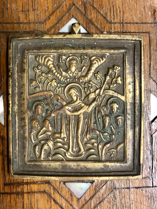 A handmade Bronze Russian icon of Mother of god. 19th Century.