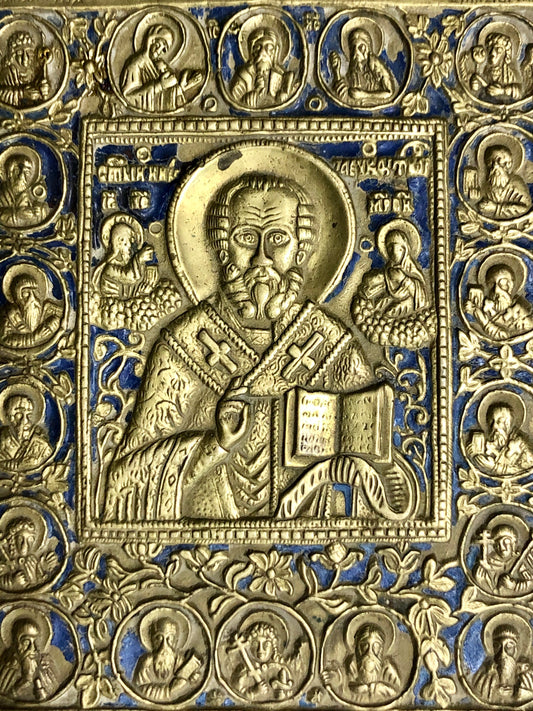 A handmade Bronze Russian icon of St. Nicholas. 19th Century.