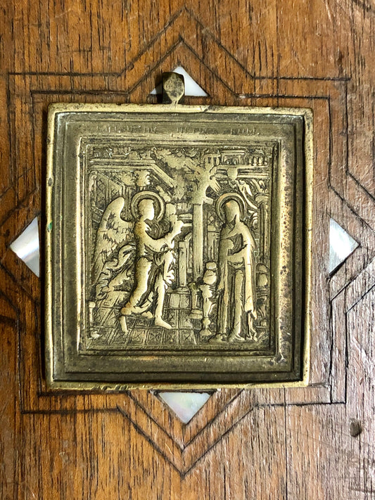 A handmade Bronze Russian icon of Annunciation. 18th Century.