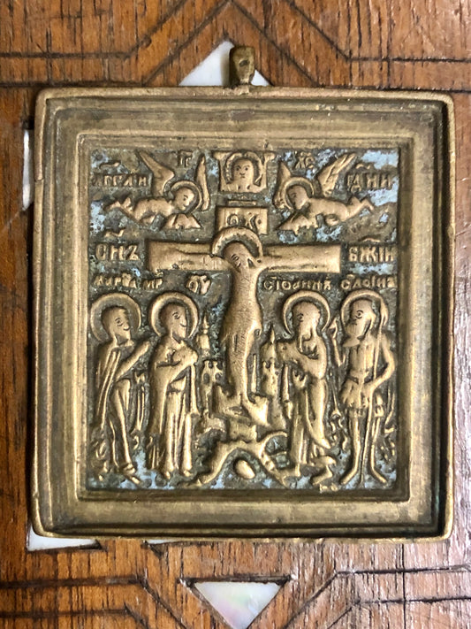 A handmade Bronze Russian icon of Jesus's Crucifixion. 18th Century.