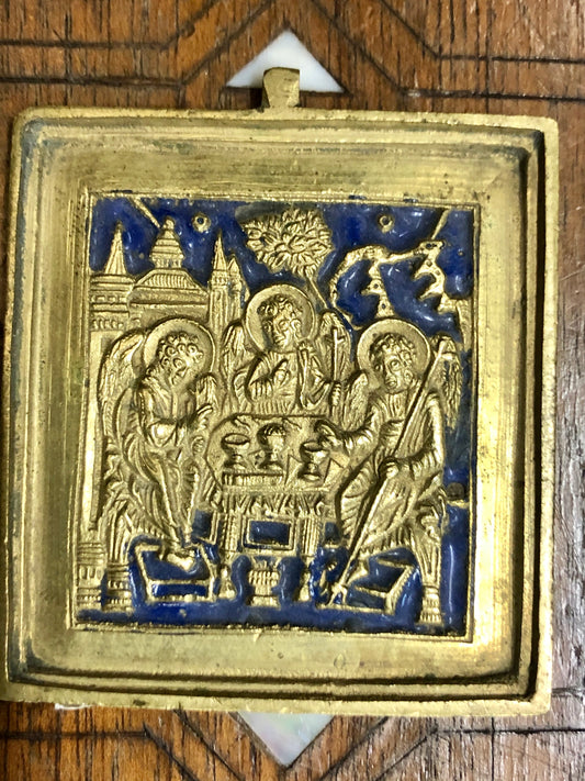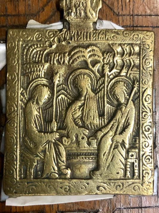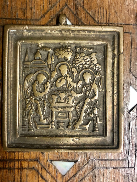 A handmade Bronze Russian icon of The Holy Trinity. 19th Century.