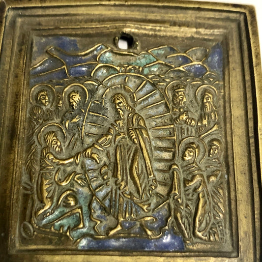 A handmade Bronze Russian icon of Jesus's Transfiguration. 18th Century.