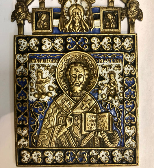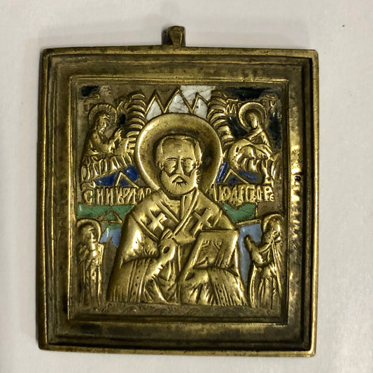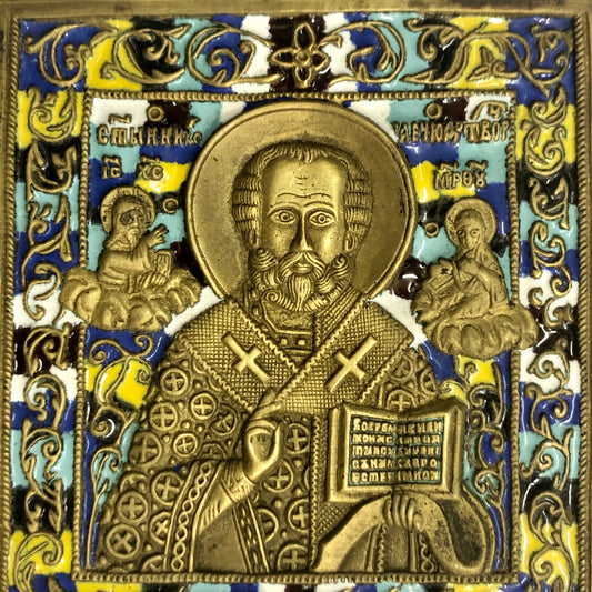 A handmade Bronze Russian icon of St. Nicholas. 19th Century.