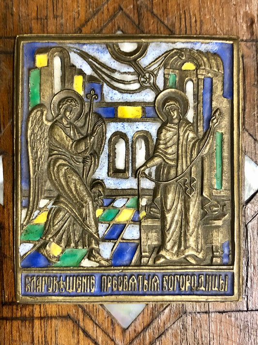 A handmade Bronze Russian icon of The Annunciation. 19th Century.