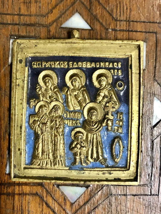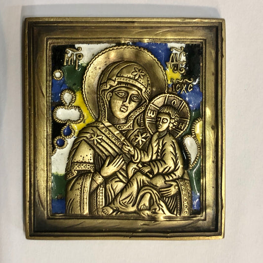 A handmade Bronze Russian Icon of The Virgin Mary. 19th Century.