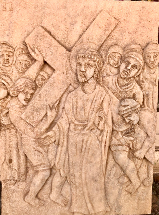A complete set of fifteen pieces made out of marble of the Via Dolorosa Depiction of Jesus. Middle of 18th Century.